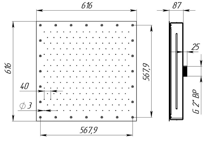 Air massage plate for tiled pools 600 x 600 mm AISI 316L