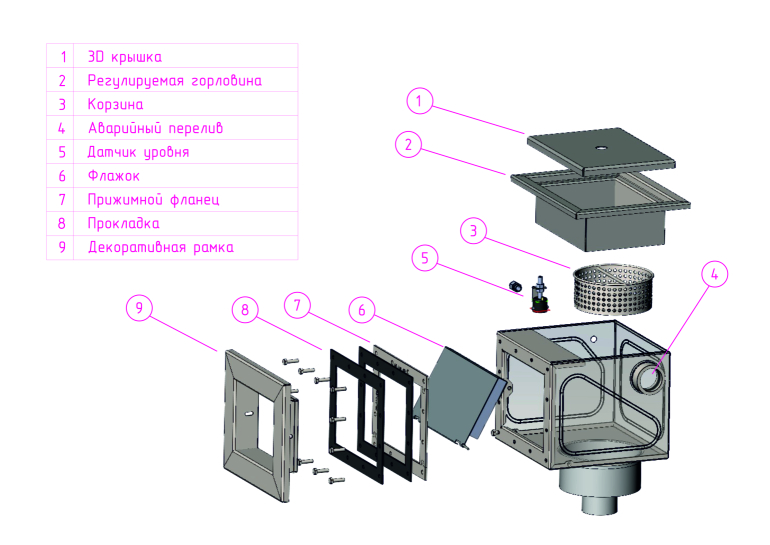 - Корзинка для сбора мусора. Наша корзинка сделана из нержавеющей стали, которая в отличие от пластика не всплывает и не трескается. Стальная надежность!