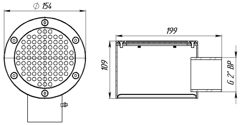 Присоединение - внутренняя резьба 2". Комплектуется прижимным фланцем, уплотняющей прокладкой и винтами.
