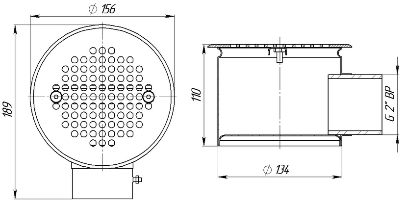 Присоединение - внутренняя резьба 2". Крышка за счет увеличенного размера скрывает примыкание и возможные дефекты подрезки плитки (мозаики).