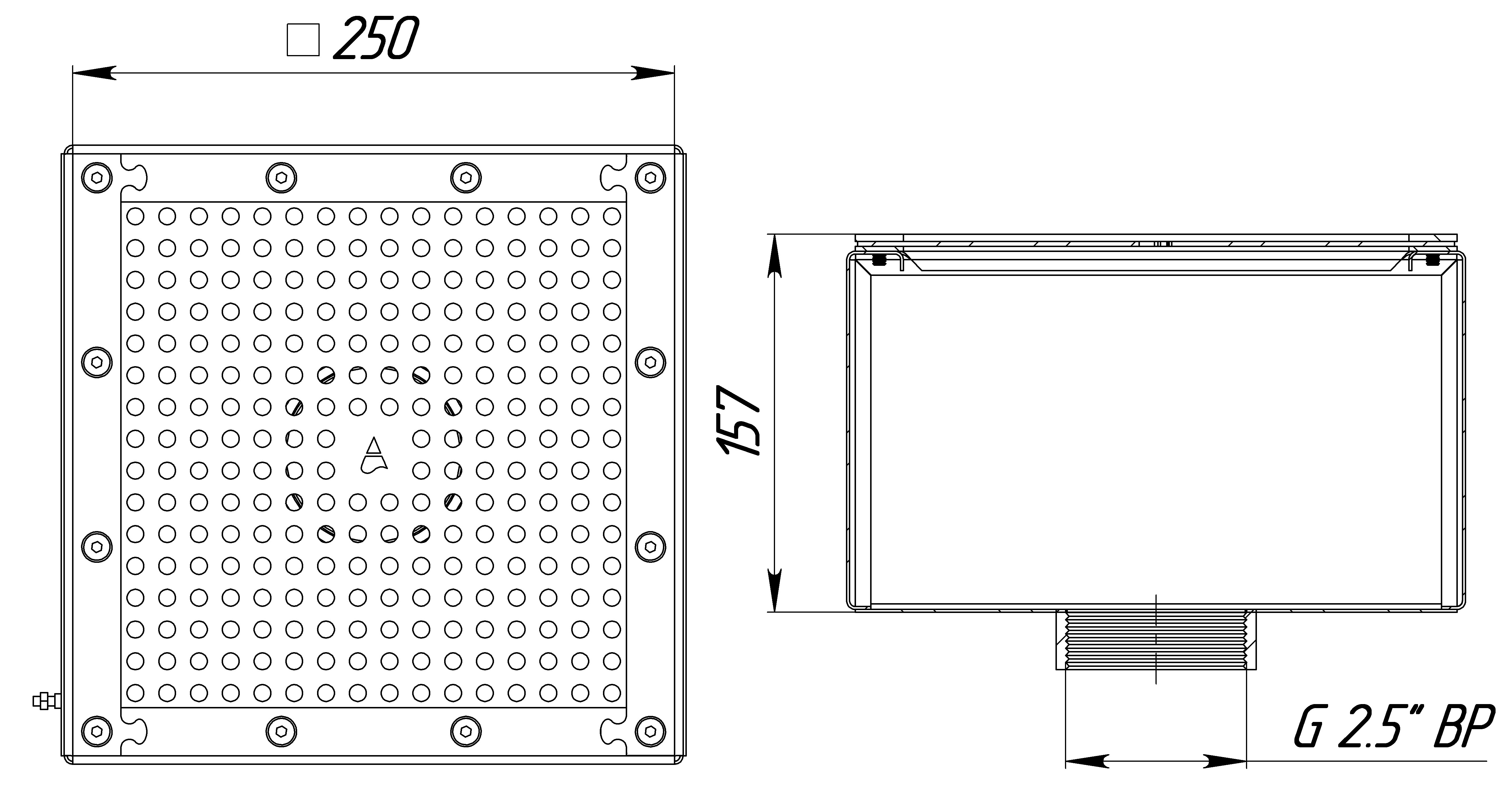 Донный слив 2,5" 250х250 с нижн. подключением (AISI 316L)