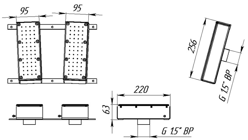 Сиденье аэромассажное двухполосное из нержавеющей стали AISI 316 для бассейнов, облицованных пленкой. Состоит из двух частей (сиденья и спинки).