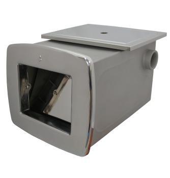 Скиммер разработан специально для установки в композитные бассейны. Угол наклона заборной части совпадает с углом наклона стен большинства композитных чаш. Это позволяет существенно облегчить монтаж.