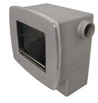 Комплектуется фильтром грубой очистки — корзиной из нержавеющей стали; аварийным переливом; узлом с кронштейном для установки герконового датчика (для автоматического поддержания уровня воды в бассейне); обжимным фланцем с герметизирующими прокладками и болтами; полированной декоративной лицевой рамкой.