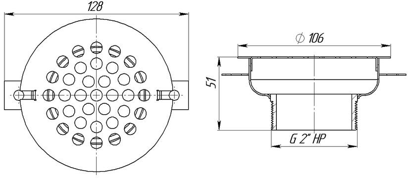 Применяется в качестве заборников воды в переливных лотках бассейнов. Присоединение - наружняя резьба 2".