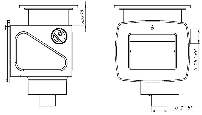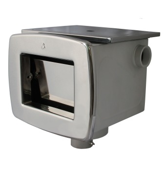 The skimmer is equipped with a filter basket, emergency overflow, floating wave compensator and a liner frame with gasket and screws. Installation in a pool wall. Circulation system connection is internal thread 2", emergency overflow connection external thread 1 1/2".