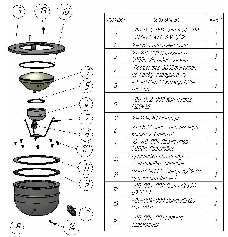На эскизе №1 показаны его состав и спецификация прожектора под пленку.