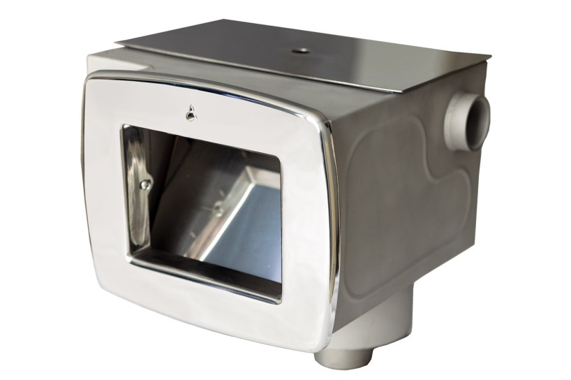 Для отвода избытка воды (при переливе или волнообразовании) предусмотрен аварийный перелив. Скиммер доступен в двух вариантах исполнения: из нержавеющей стали AISI 304 или AISI 316L.