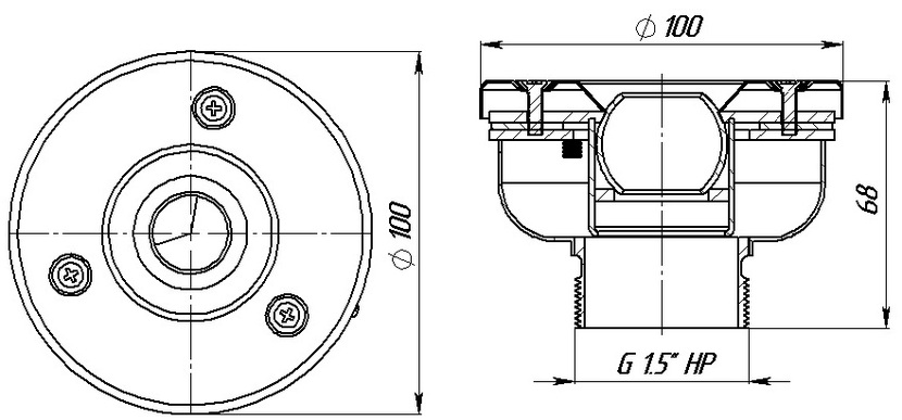 Присоединение - наружная резьба 1,5". Комплектуется прижимным фланцем, уплотняющей прокладкой и винтами. Для установки форсунки в борт бассейна.