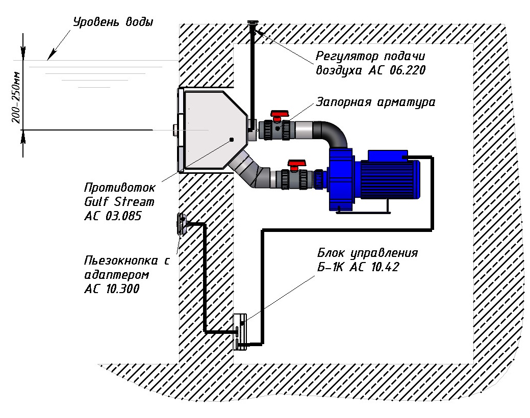 Примечание: требуется подбор насоса, кнопки, блока пуска и комплект обвязки.